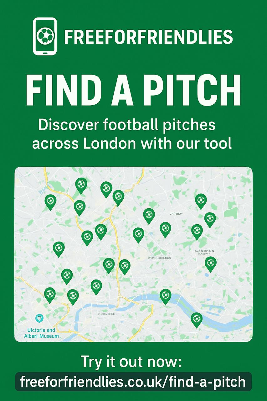 Looking for a place to play? Our Find a Pitch tool makes it easy to discover football pitches across London. Whether you’re organizing a friendly with your mates, setting up a local league game, or just want a casual kickabout, you can explore nearby pitches in real time using Google Maps. Save time, find the most convenient locations, and get straight to the game.